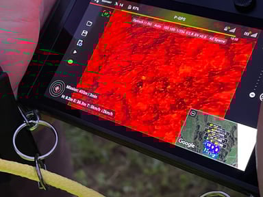 Erscheint auf dem Bild ein Wärmepunkt, pausiert der Pilot den Wegpunkteflug, setzt ein sogenannter POI (Point of Interest) und lässt die Drohne weiter den Wegpunkteflug fliegen.